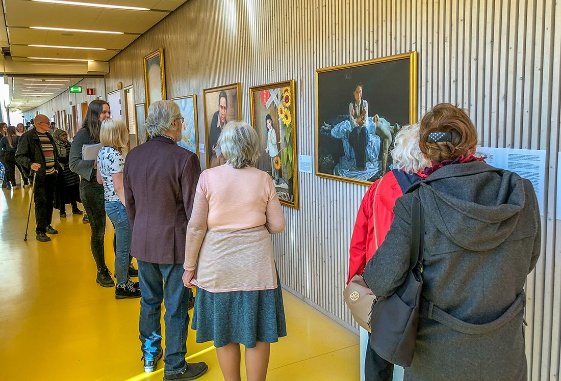法轮大法学会主办的"真善忍国际美展"在斯德哥尔摩东部高中开幕,民众深深感动