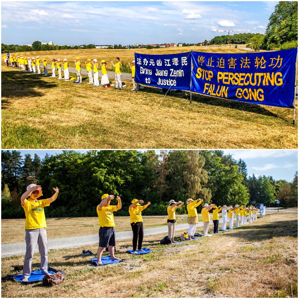瑞典学员集体炼功抗议江泽民虐杀大法弟子