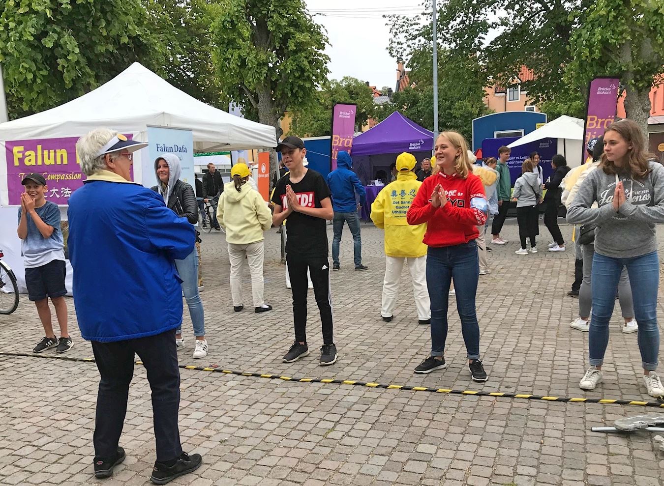 法轮功学员参加瑞典政治周 人们被祥和的气氛吸引纷纷学炼功法