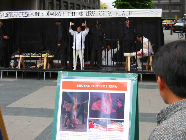 来自世界各地的法轮功学员在斯德哥尔摩举办反酷刑展 呼唤善良的人们共同来制止中共江氏集团对法轮功的迫害