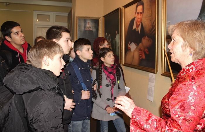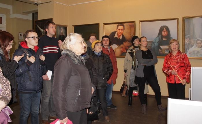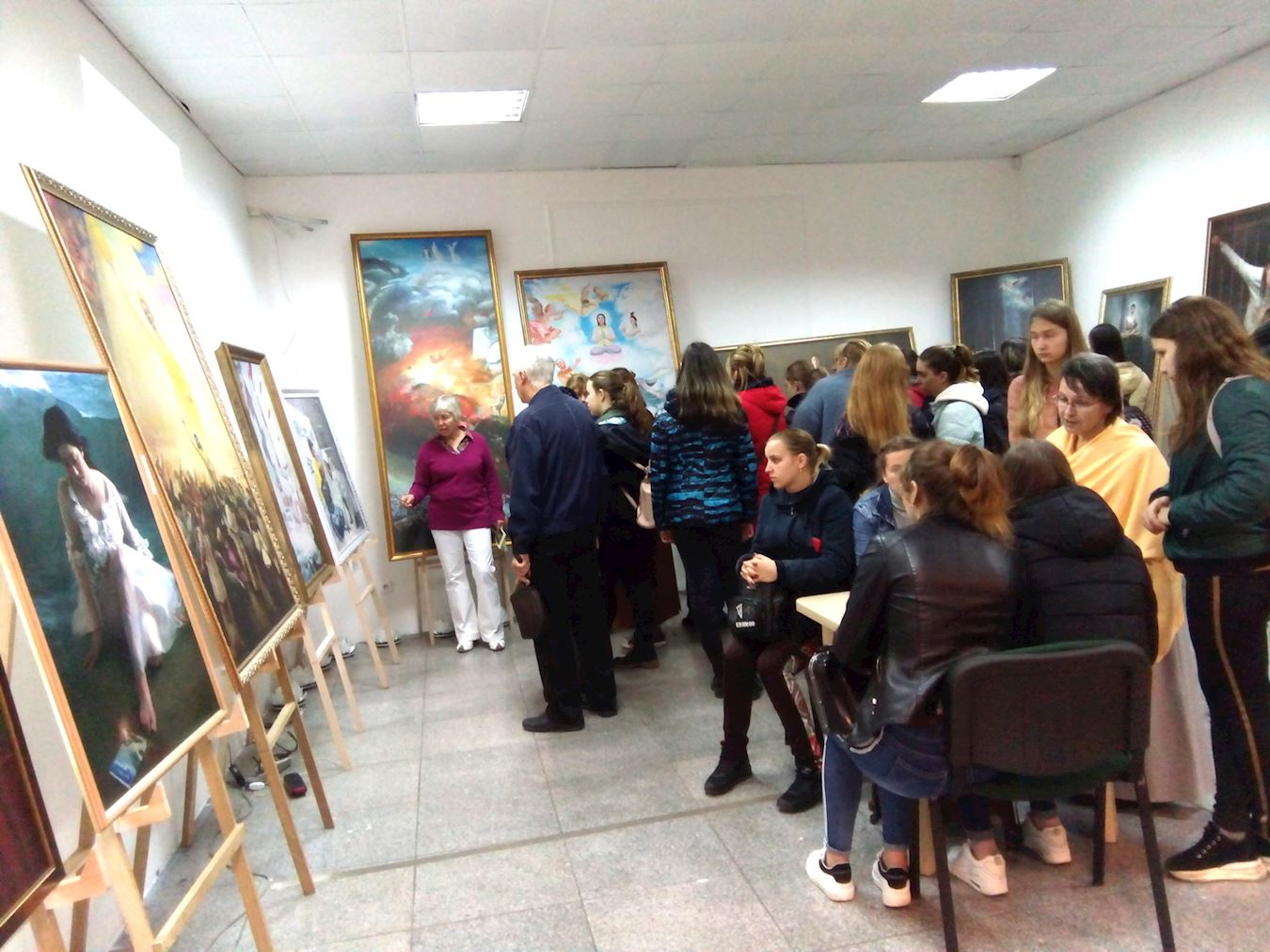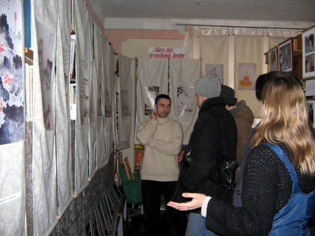 乌克兰法轮功学员在维尼察(Винница)市区艺术博物馆举办了法轮功学员的绘画作品及"正法之路" 图片展 前来参观的人络绎不绝