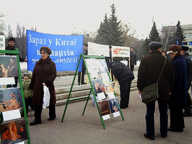 乌克兰法轮功学员在巴布劳维夏举办讲真相图片展看真相录像。2006-1-20-22