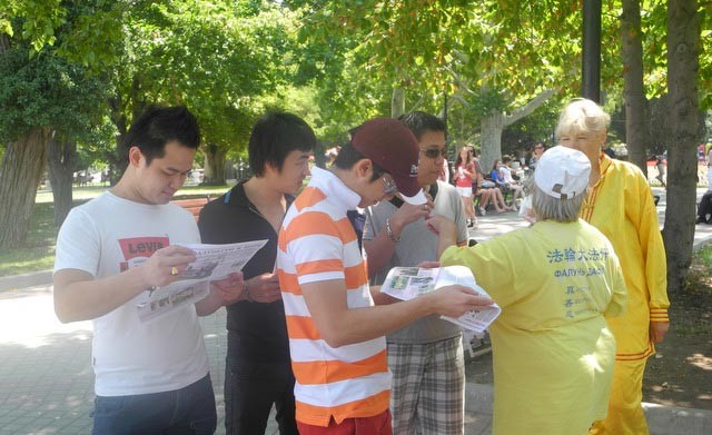 中国游客对法轮功真相很感兴趣