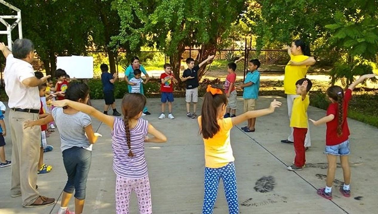 小朋友在Guasave市的锡那罗亚校园,学炼法轮功,以真、善、忍理念教育孩子