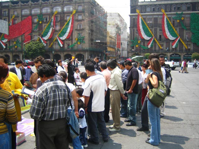 各国学员在墨西哥城著名的Zocalo广场向人们讲法轮功真相
