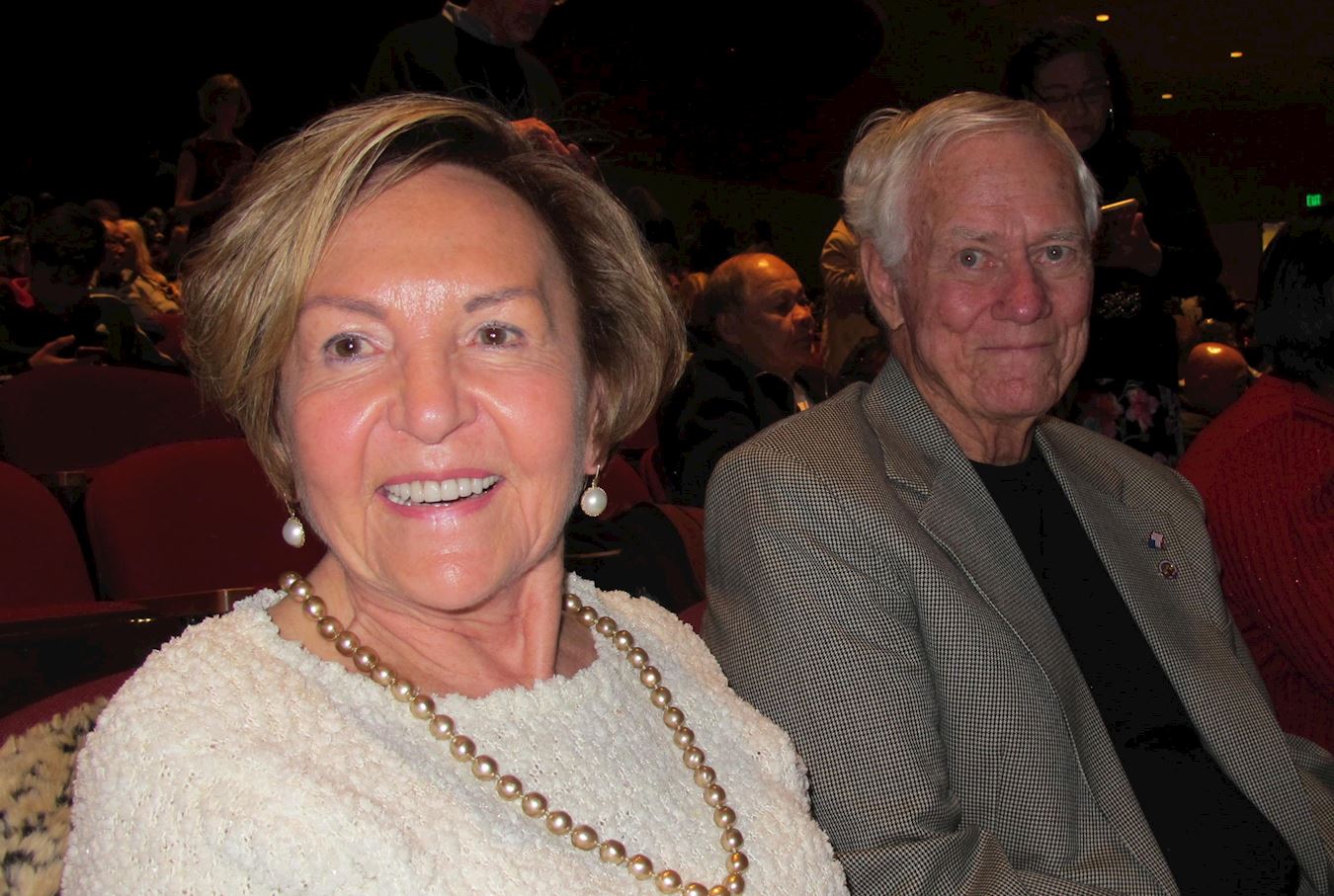 旧金山歌剧院董事Jayne Davis女士(右)与先生Peter Davis一起观看了一月十一日下午的旧金山神韵晚会