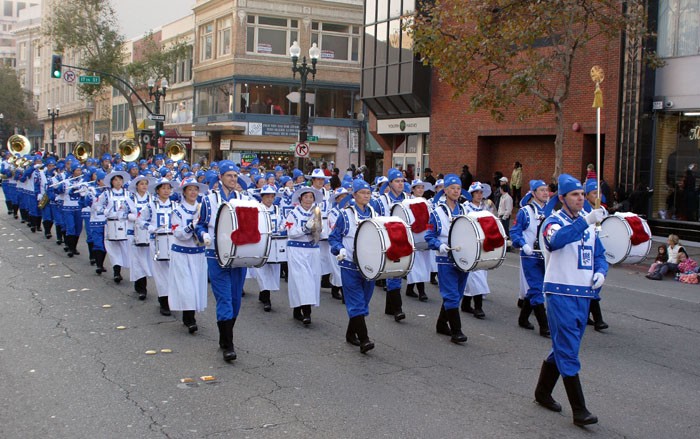 法轮功学员组成的天国乐团应邀参加加州奥克兰假日游行,古装汉服引人瞩目2009-12-6