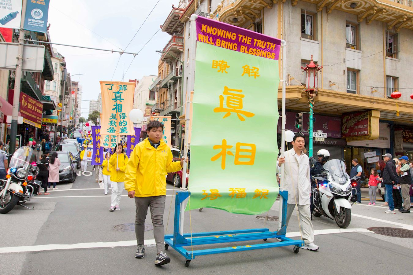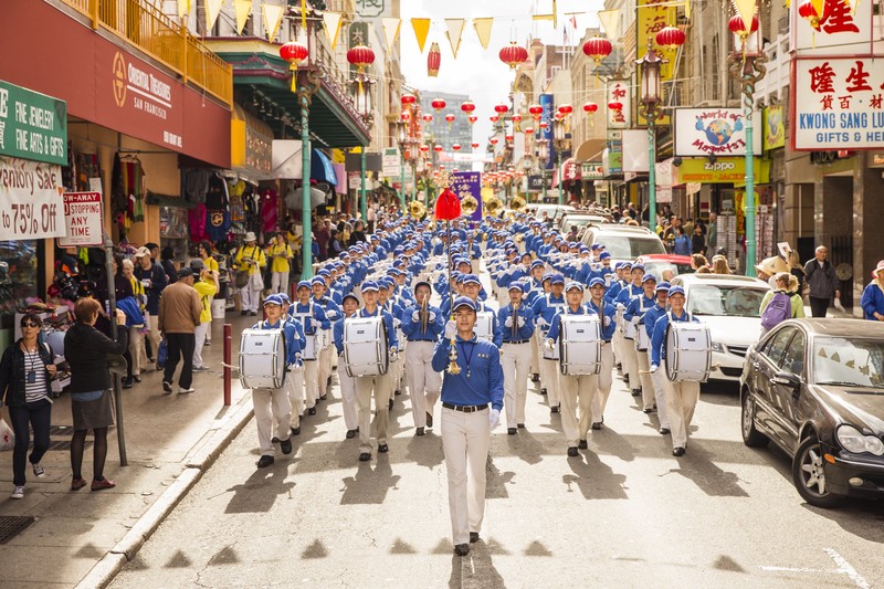 法轮功学员在旧金山举行盛大游行,展示法轮大法的美好,并揭露中共对法轮功的迫害。