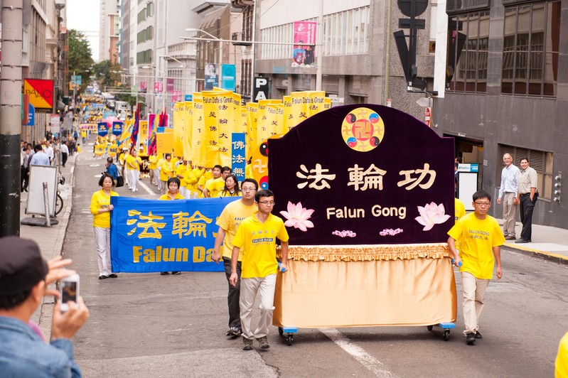 法轮功学员的游行带给旧金山中西方人士心灵震撼