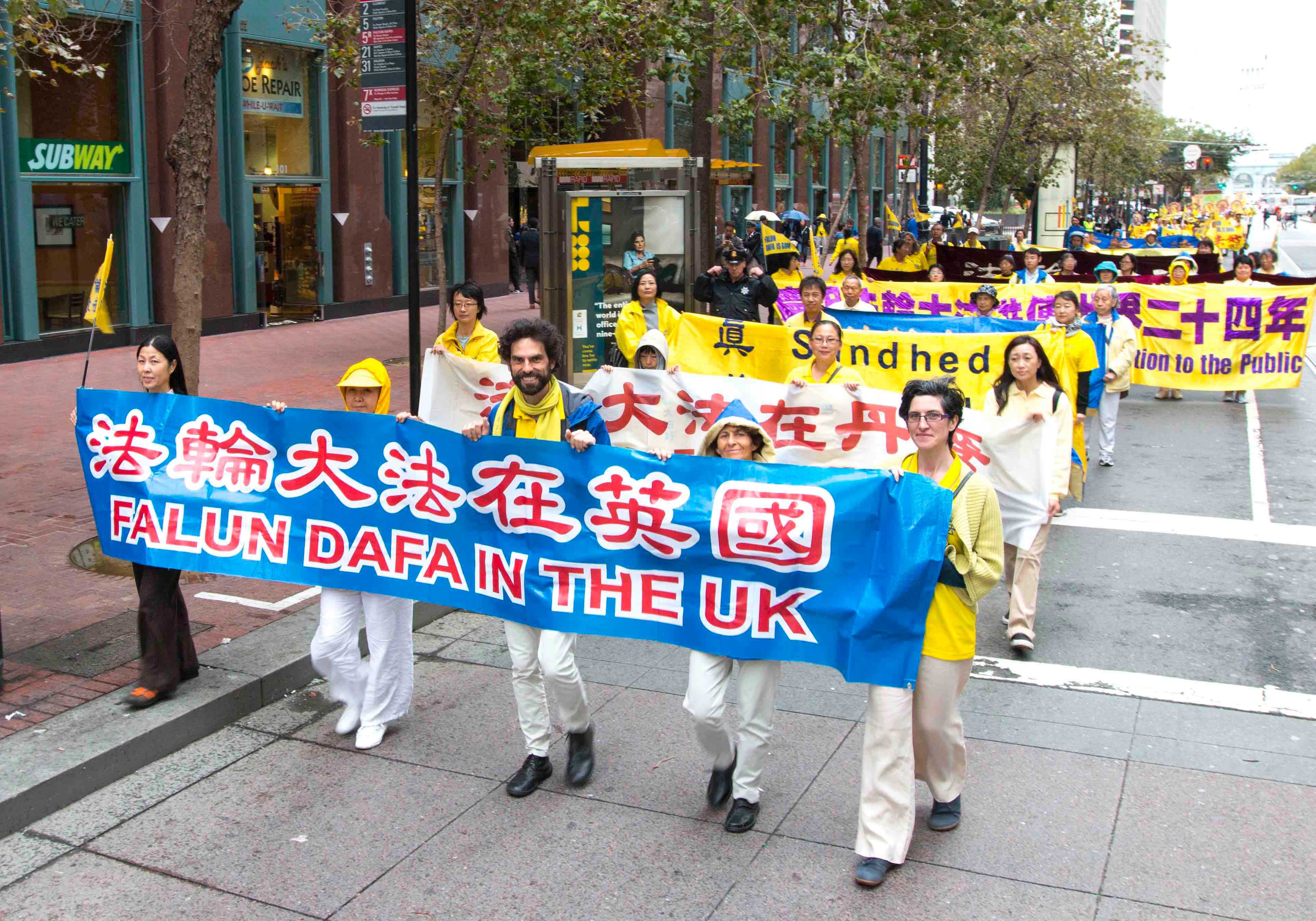 法轮功学员在旧金山市中心游行,呼唤正义良知