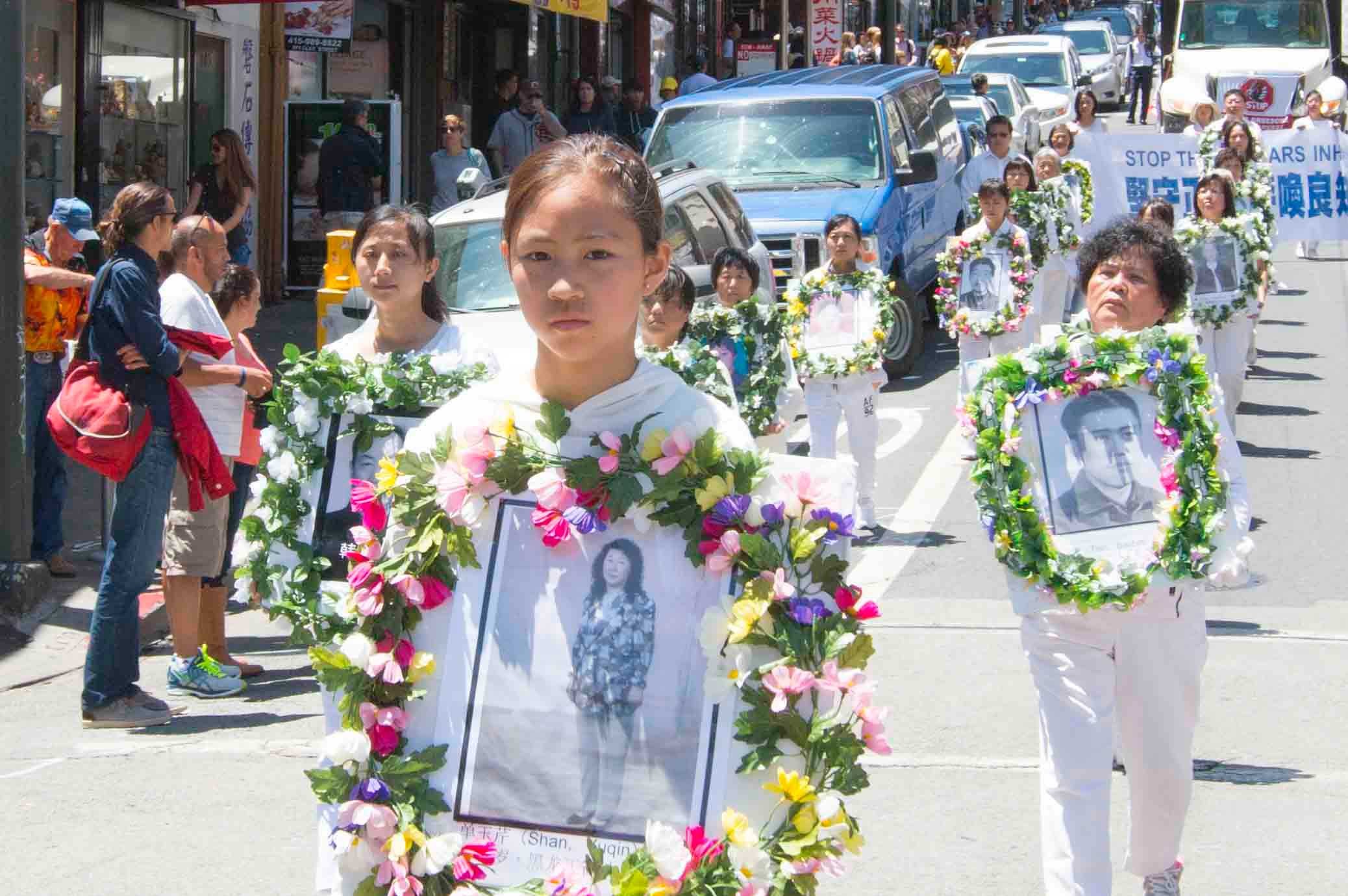 世界各国学员举行旧金山正法之路大游行 图为悼念被迫害致死的法轮功学员