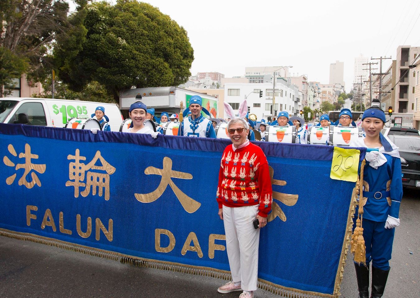 法轮功学员参加旧金山复活节游行,受到主办方和观众的欢迎
