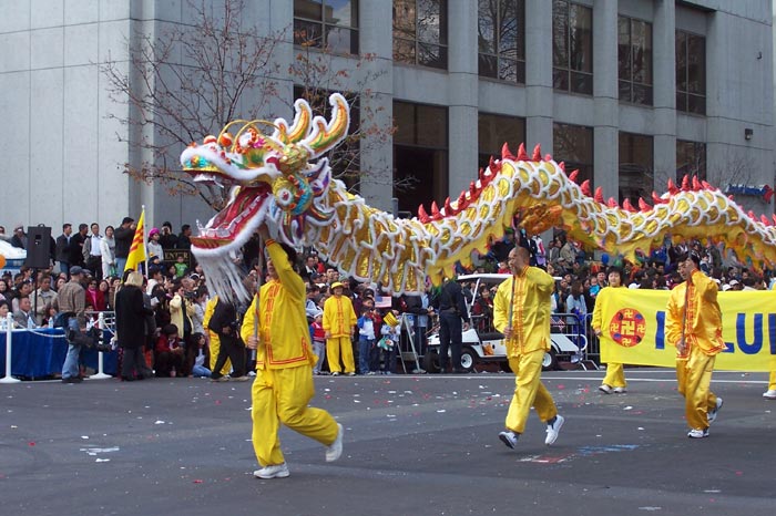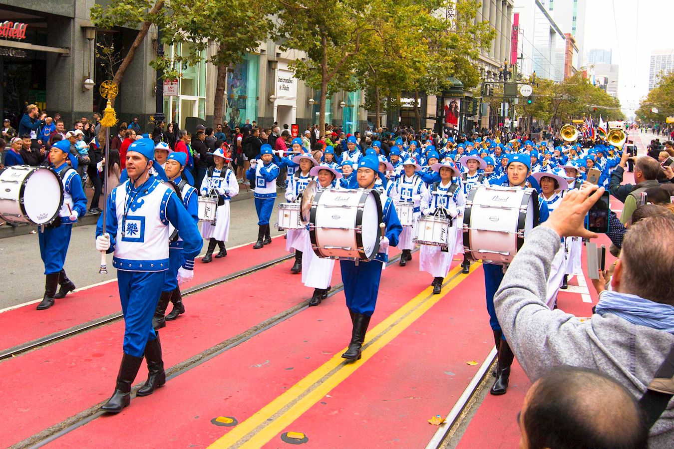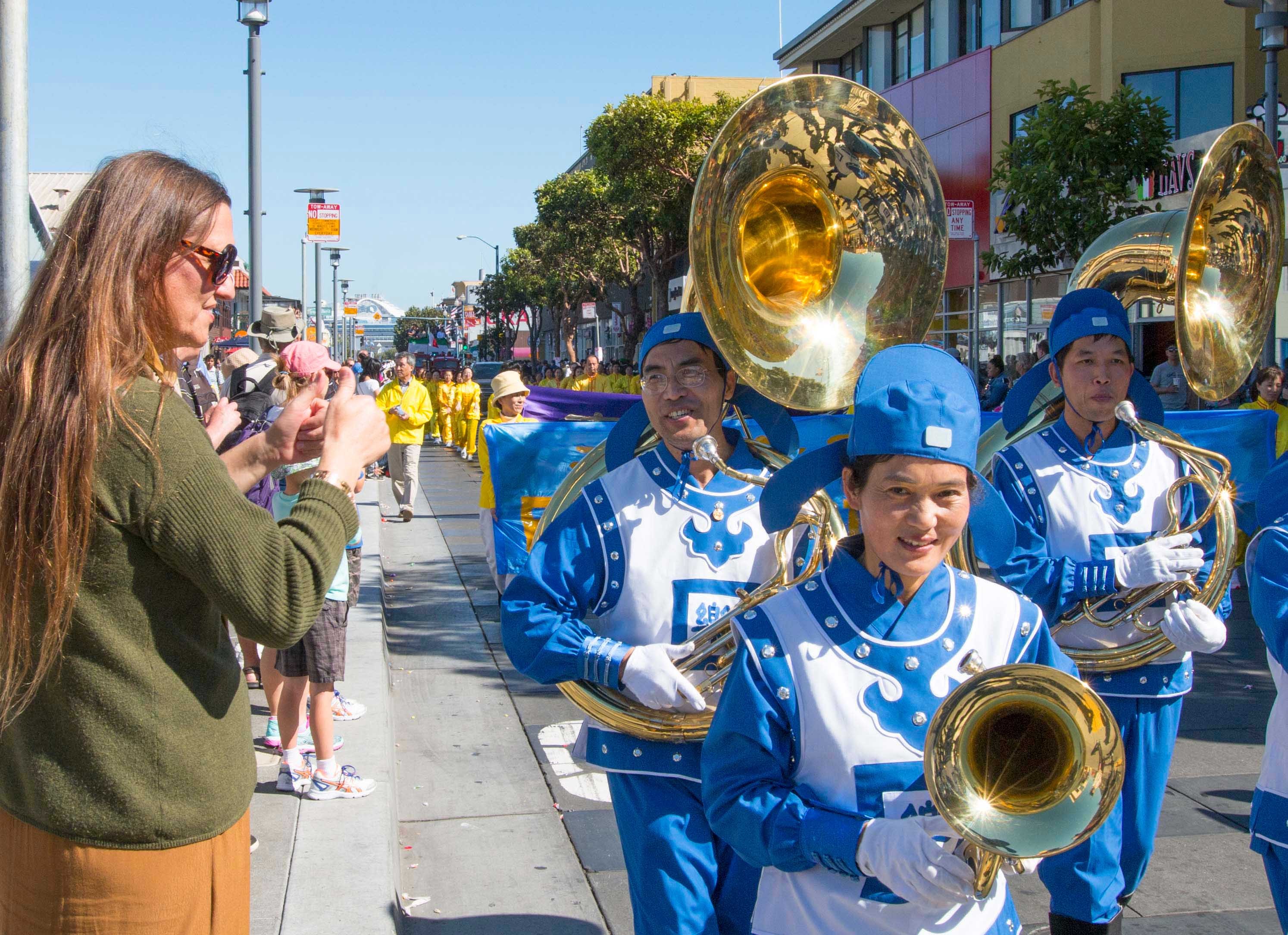 和社区共庆节日 旧金山的法轮功游行队伍受欢迎