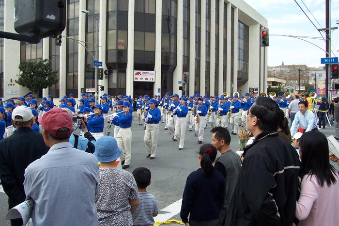 组建刚刚两个月的"天国乐团"为洛杉矶法轮功学员的盛大游行开道2006-2-26