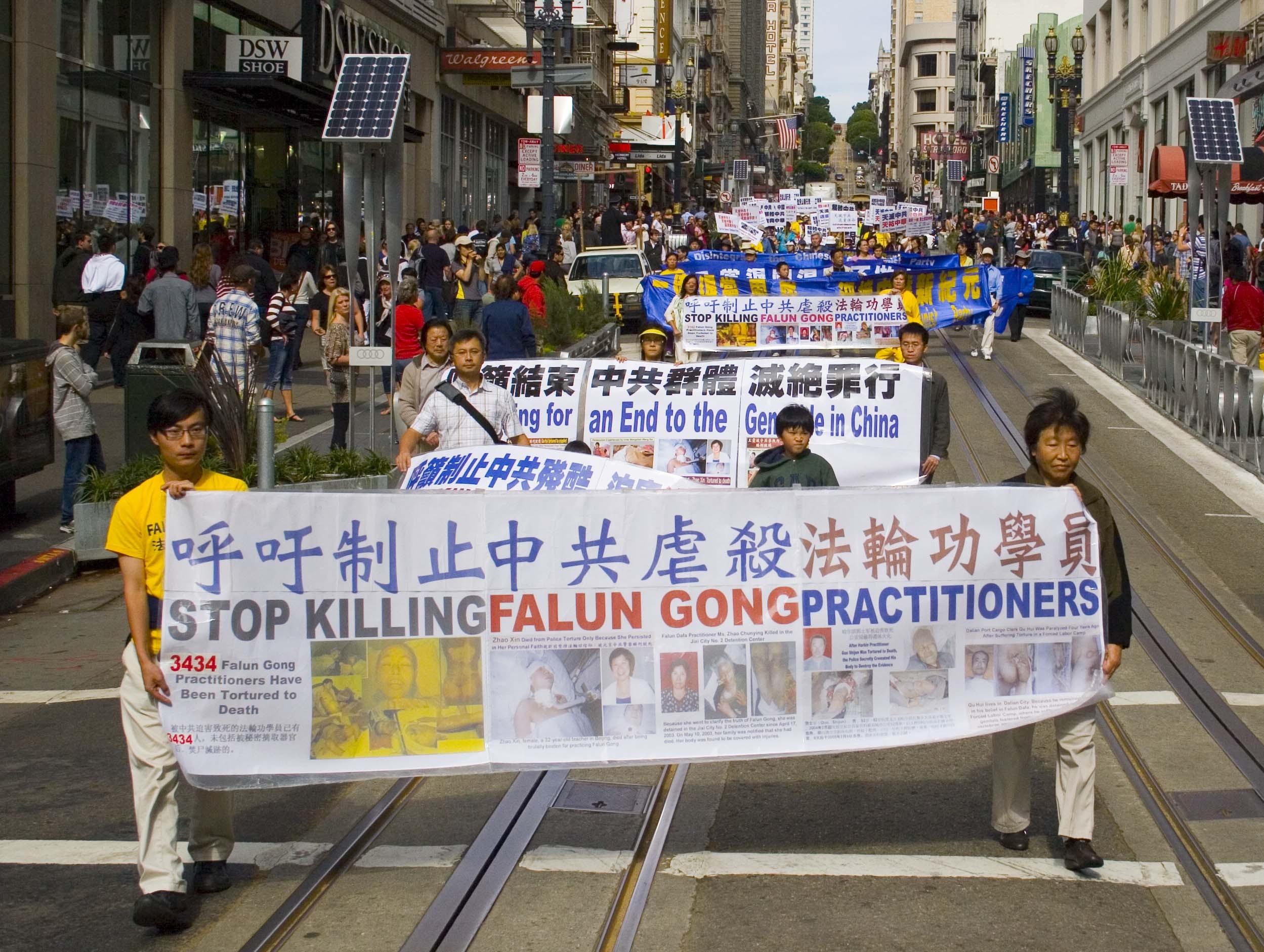 法轮功学员在市区及中国城举行大游行,呼吁共同解体中共、制止迫害。