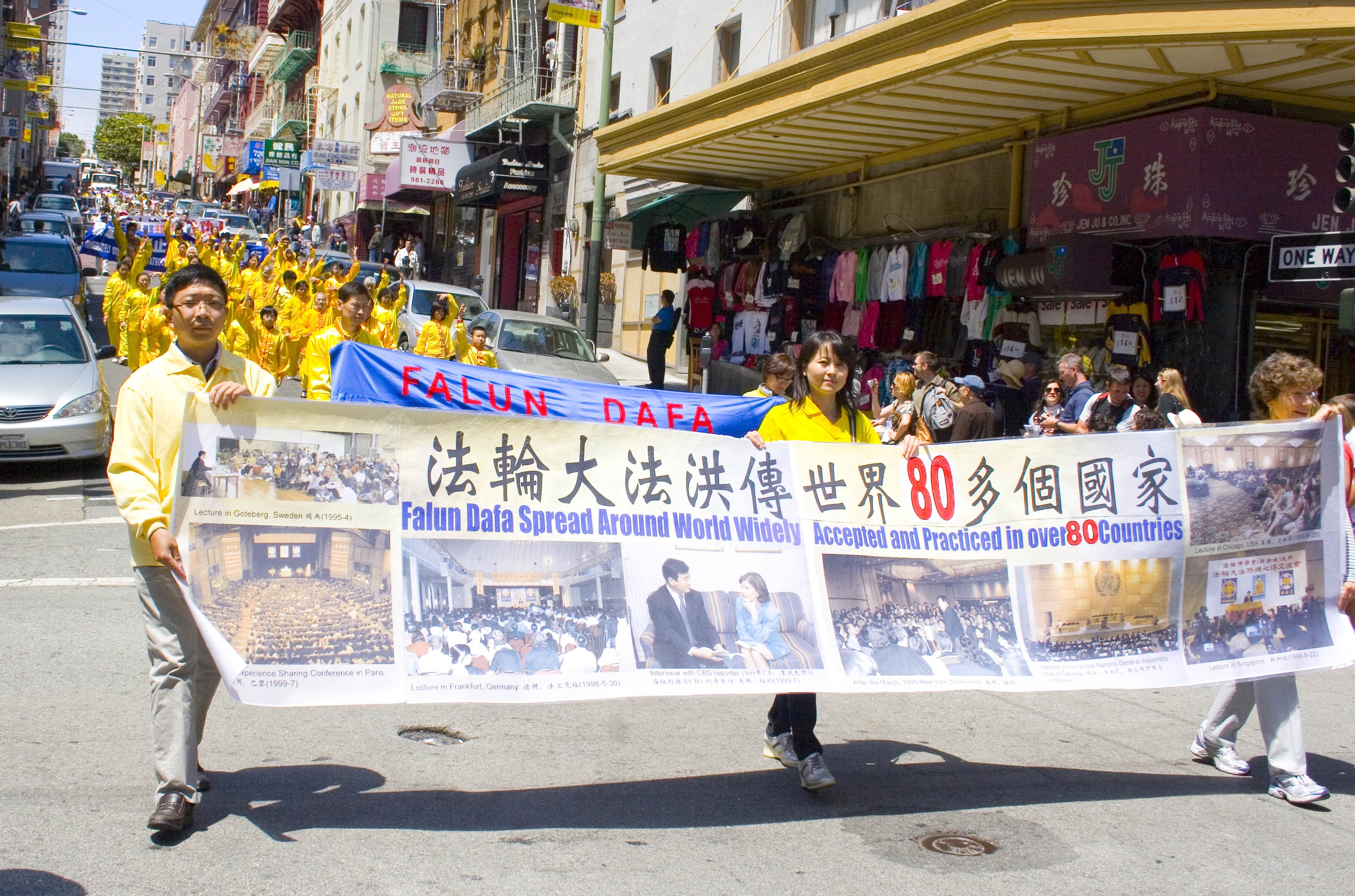 学员9月20日在旧金山举行盛大游行庆祝法轮大法在美国西部洪传 并呼吁国际社会帮助制止中国政府迫害法轮功