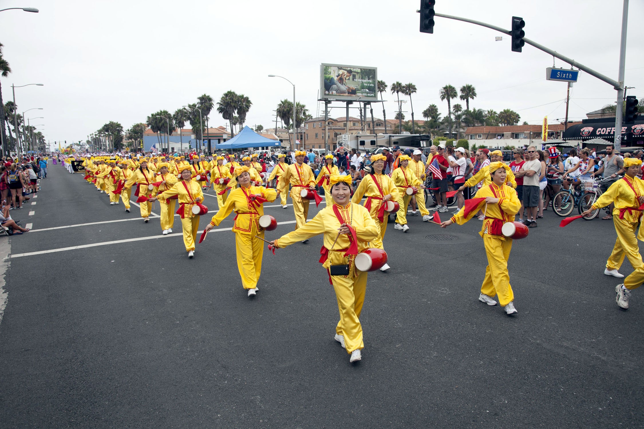 法轮功学员参加杭庭顿海滩市庆祝美国独立日的游行