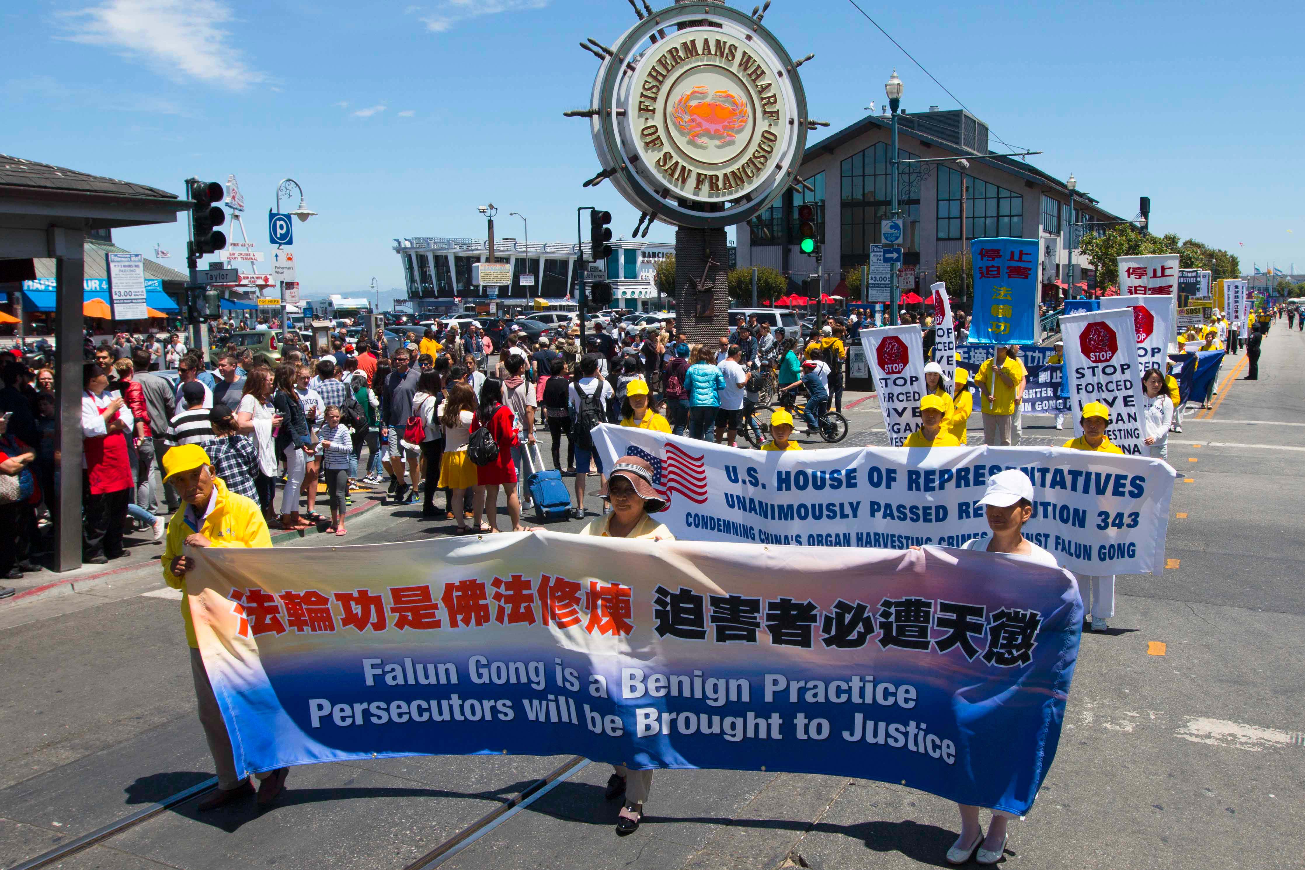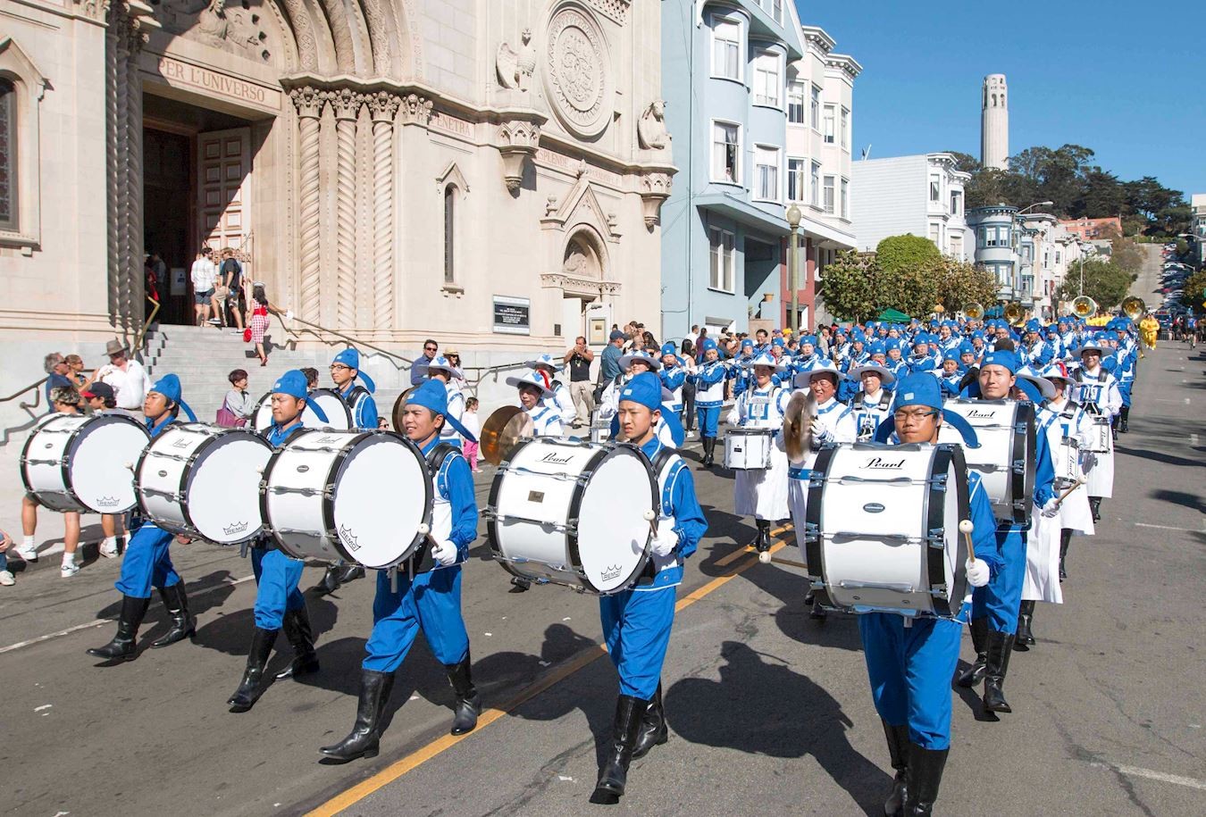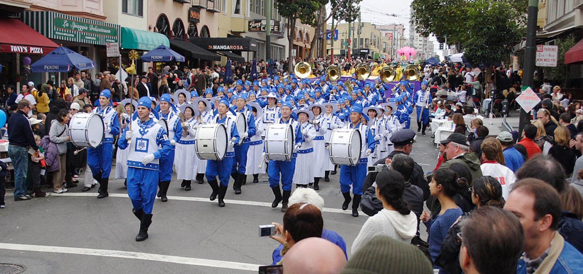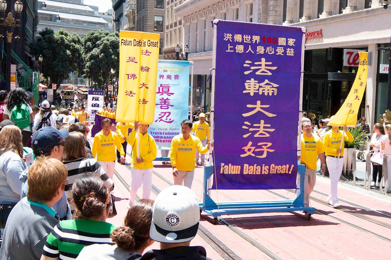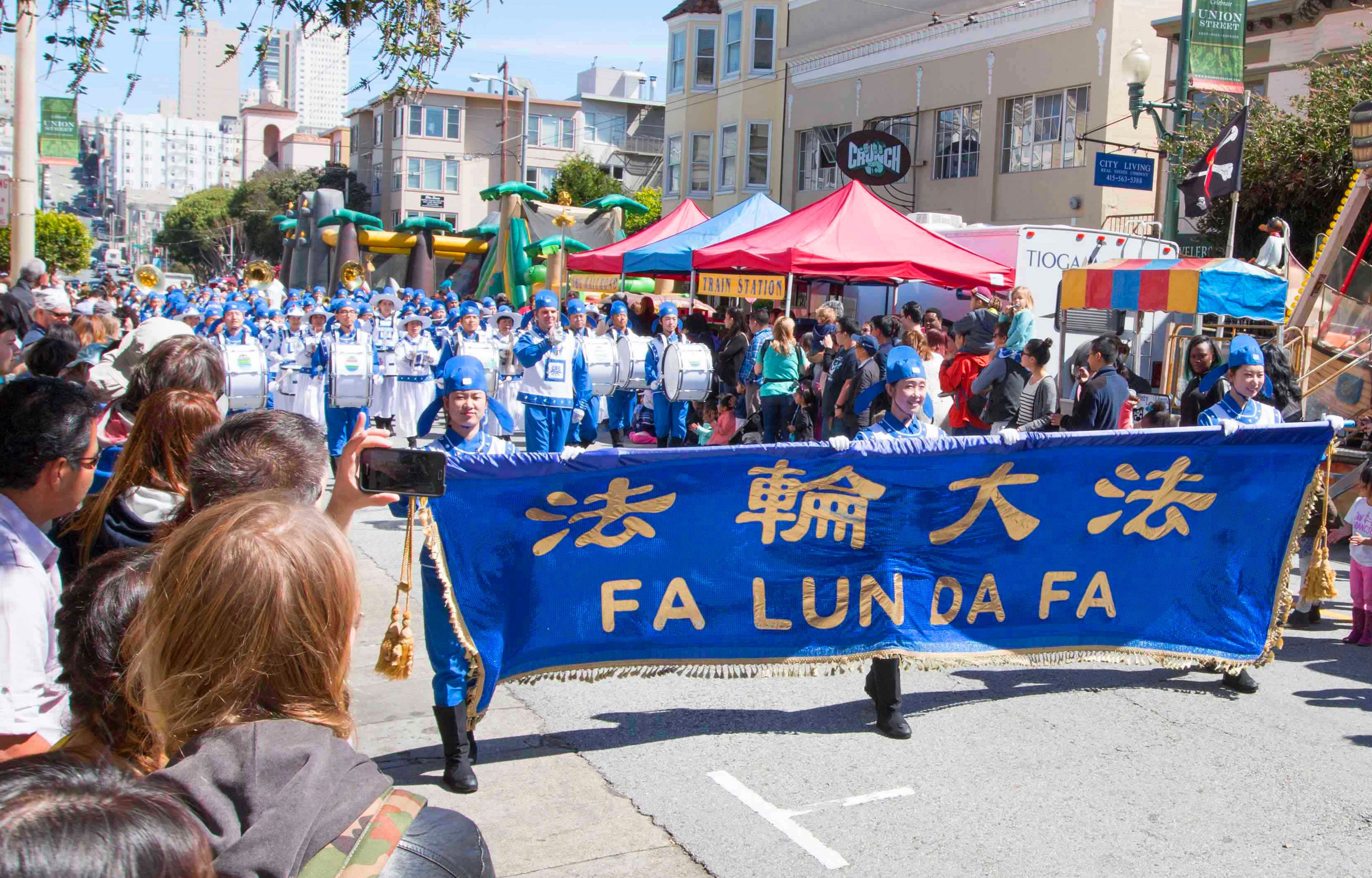 法轮功学员在旧金山举行盛大游行,展示法轮大法的美好,并揭露中共对法轮功的迫害。