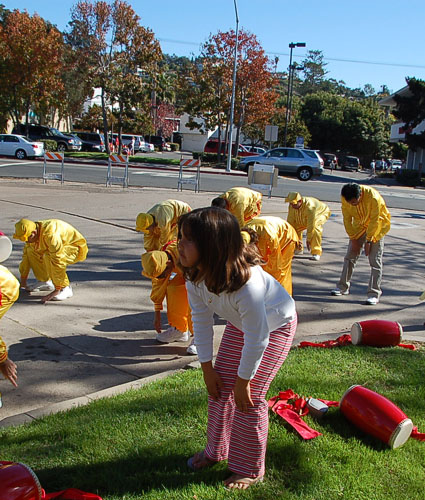 法轮功学员应邀参加圣地亚哥La Jolla的圣诞游行图为小女孩跟着学炼功2006-12-3