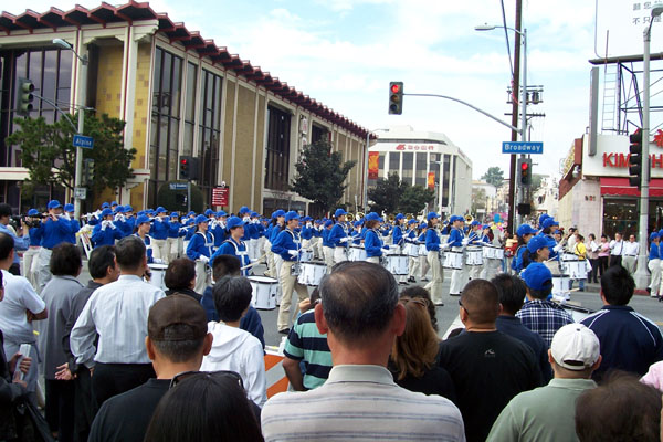 组建刚刚两个月的"天国乐团"为洛杉矶法轮功学员的盛大游行开道2006-2-26