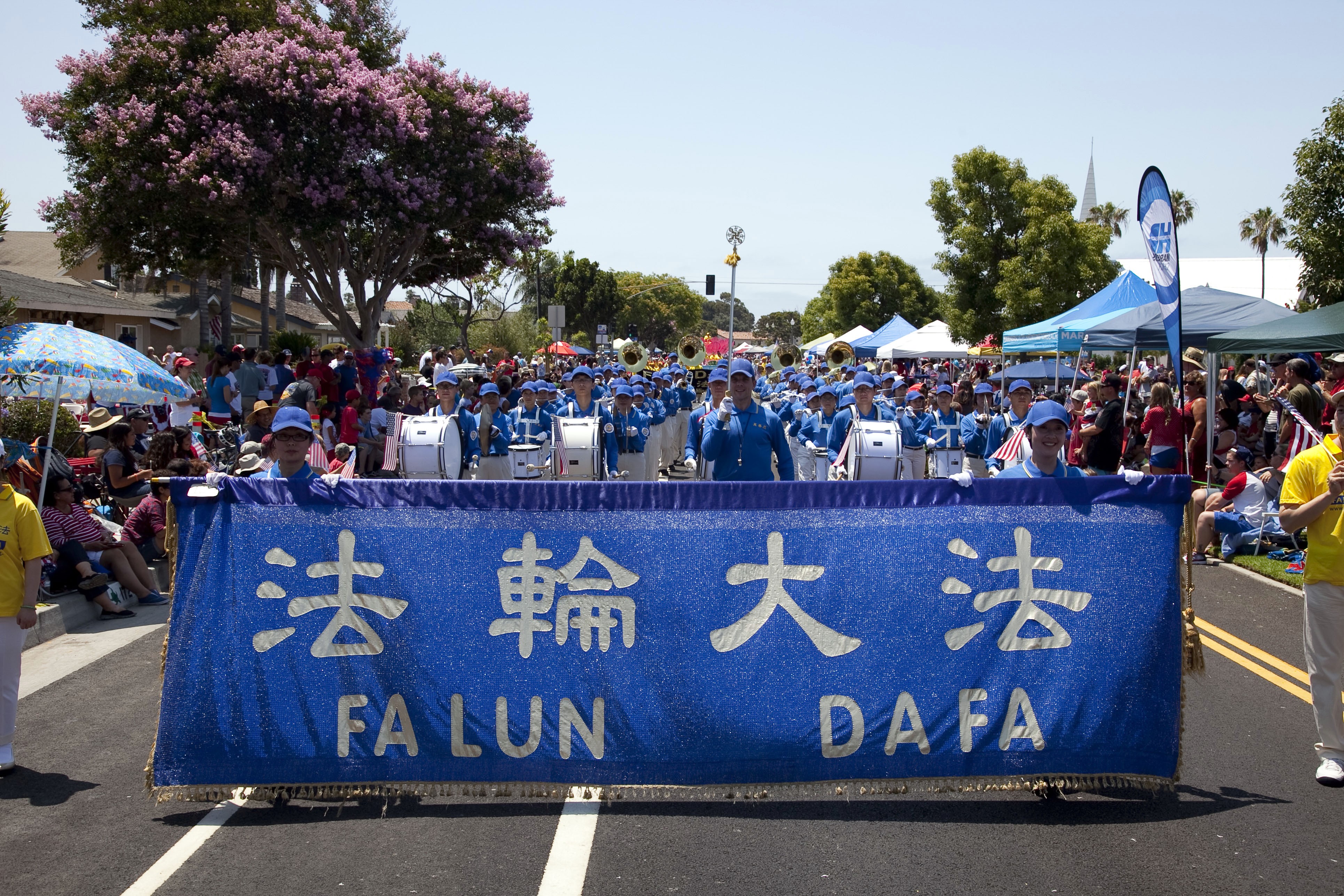 法轮功学员参加杭庭顿海滩市庆祝美国独立日的游行