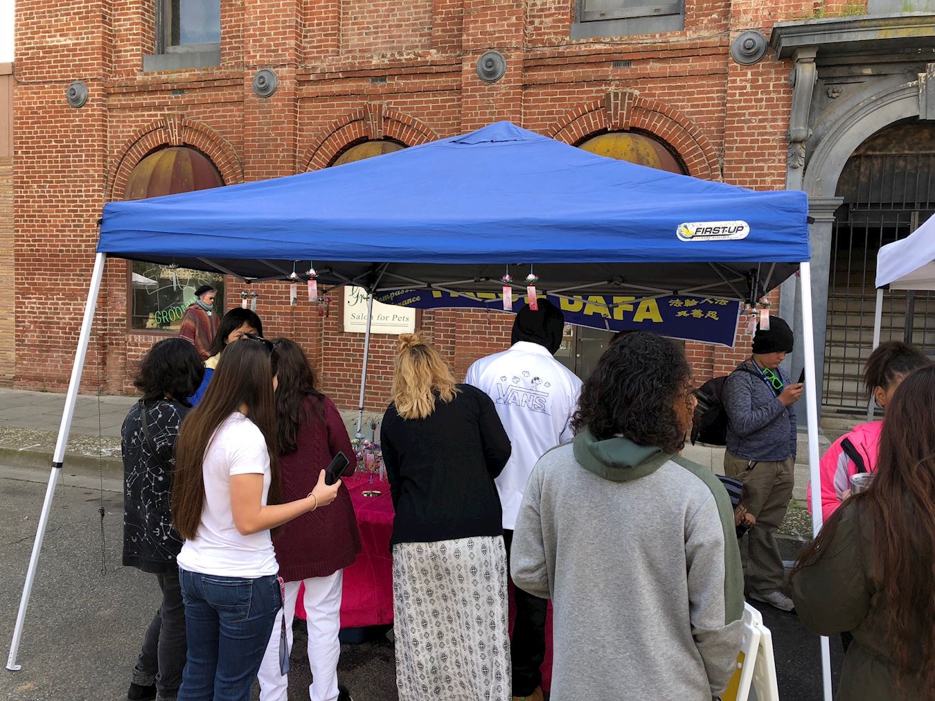 法轮功学员在旧金山市政府广场集会,了解真相的游客