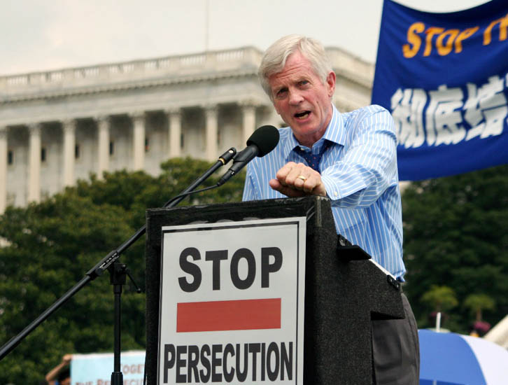 法轮功学员及各界于中共迫害十年之际在华府集会,呼吁制止迫害,众议员Dana Rohrabacher发言
