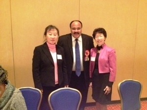 马丁﹒路德﹒金三世(中)和华盛顿DC法轮功学员Angela Lee(右)以及于真洁(左)在一起