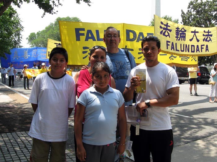 法轮功学员在华盛顿DC国会山前举行反迫害十周年集会,德国医生Larmor一家:令人向往的心灵的宁静