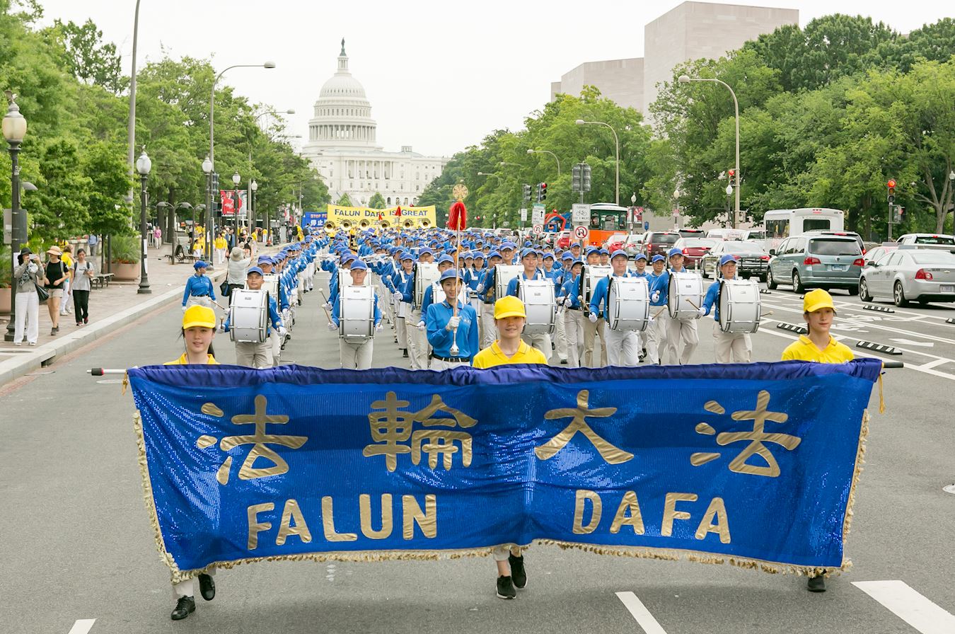 法轮功学员在美国首府华盛顿DC,举行反迫害游行。