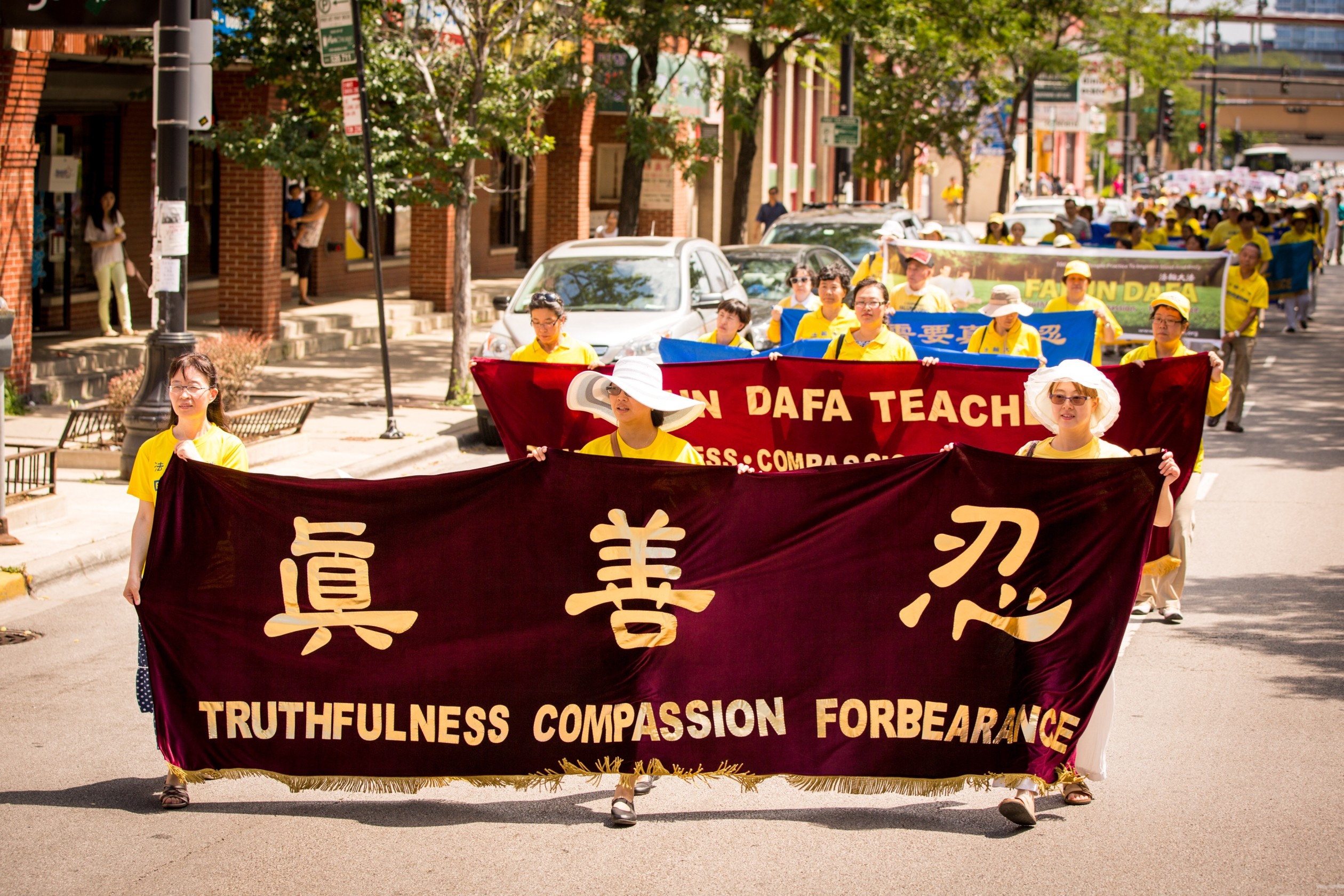 法轮功学员在芝加哥市中国城,举办反迫害大游行,呼吁制止中共残酷迫害