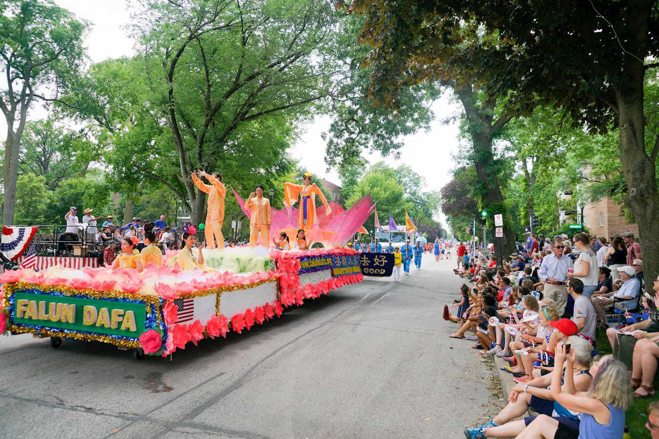 法轮功学员应邀参加埃文斯顿美国独立日游行赢得观众的热烈掌声