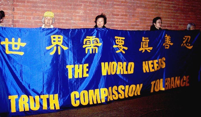 真相展板和青年大法弟子的支持