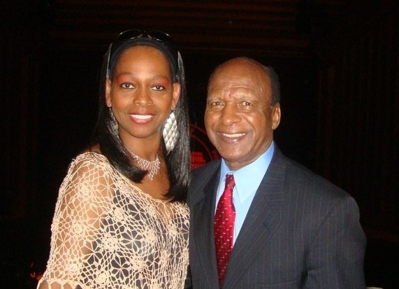 美国白宫亚太顾问委员会前主席卢迪•潘明顿和太太在贵宾招待会上。