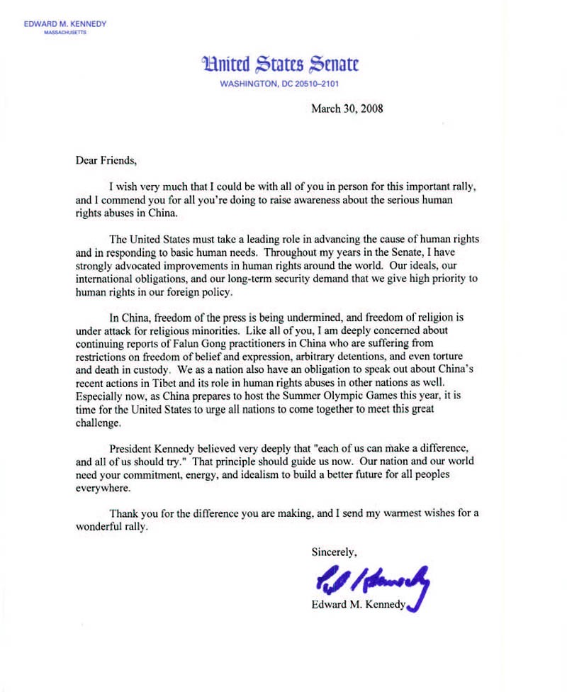 麻省参议员对李洪志先生和法轮大法的褒奖