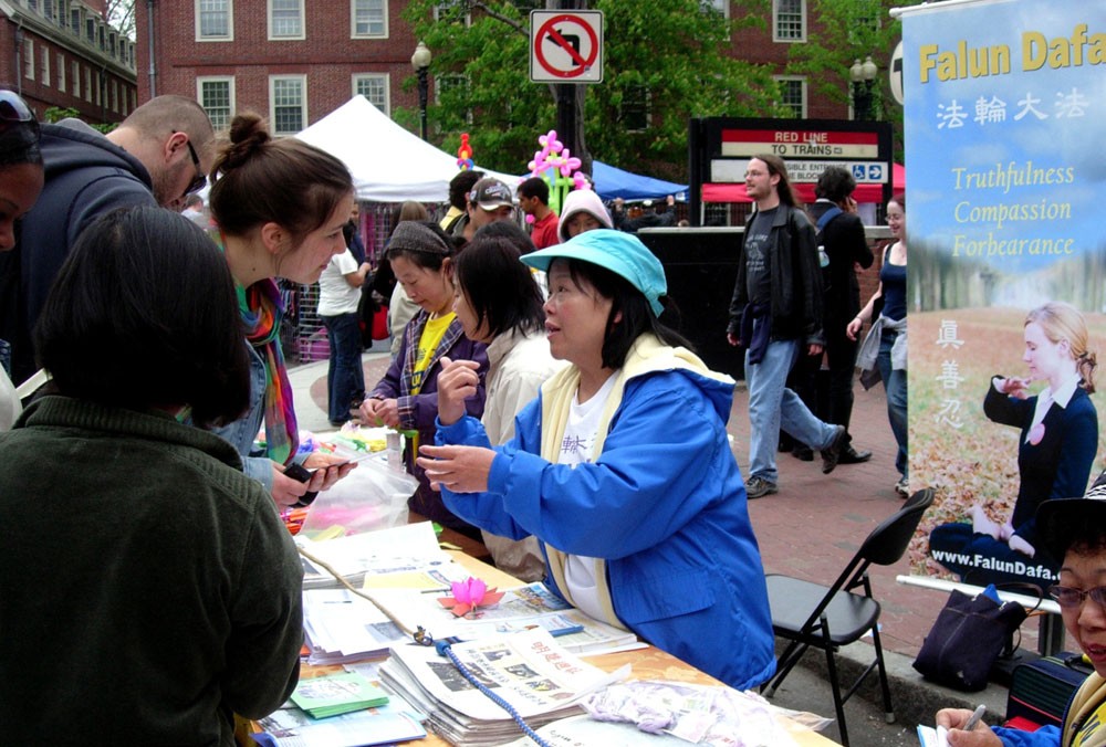 波士顿法轮功学员在哈佛广场参加五月节活动,洪法讲真相 2006-5-7