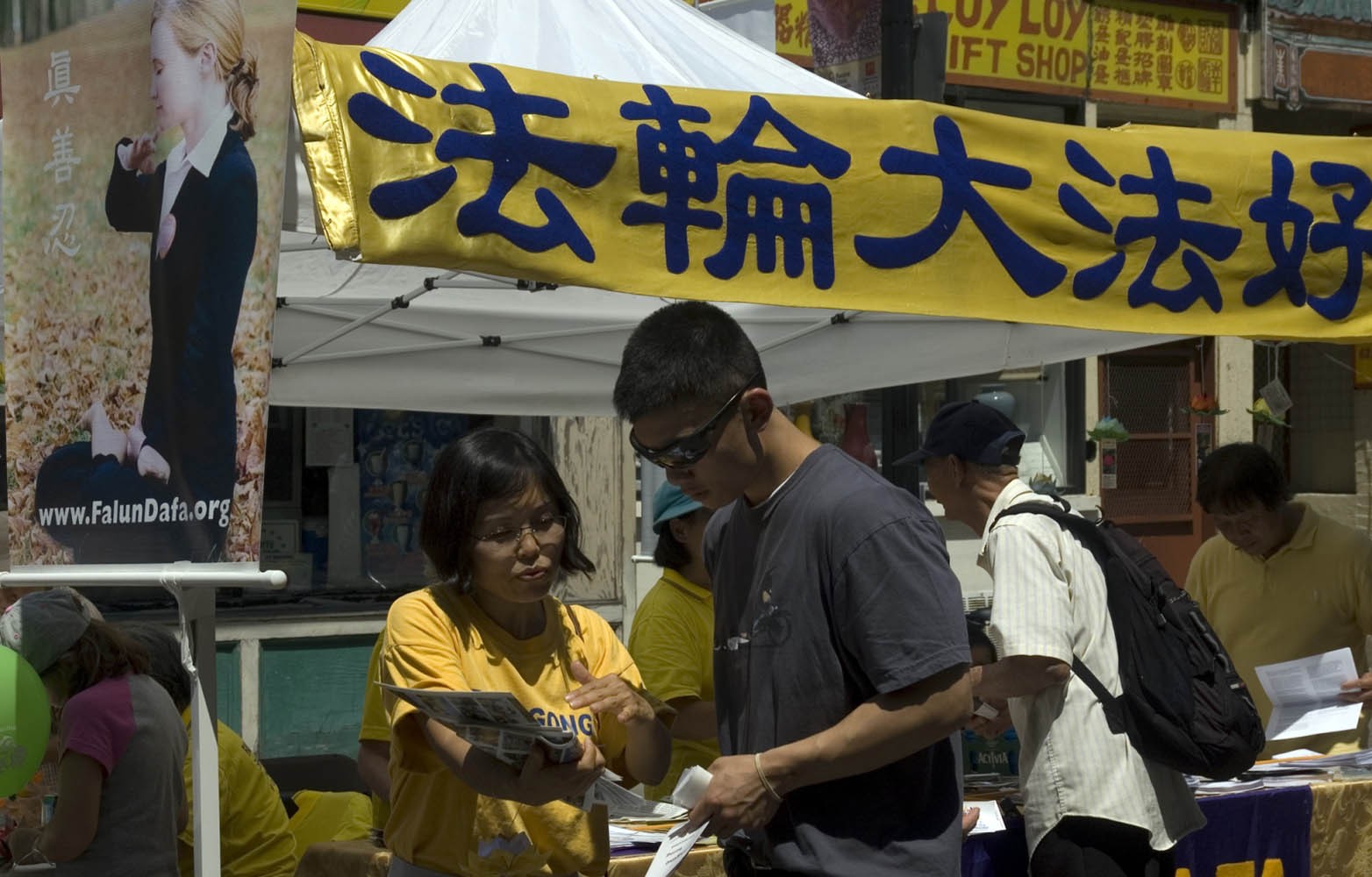 法轮功学员参加波士顿华埠举办的"亚洲风情节"活动图为民众签名支持《百万反迫害征签》2008-6-22