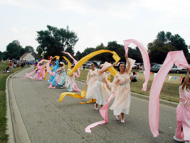 法轮功学员参加密西根州彩灯花车游行展现大法的美好图为舞蹈队伍2006-12-2