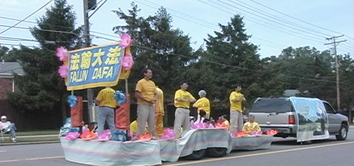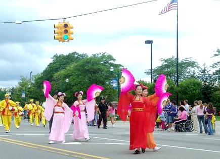 法轮功学员应邀参加密西根州独立日游行.方阵的独特和美丽,获民众印象深刻