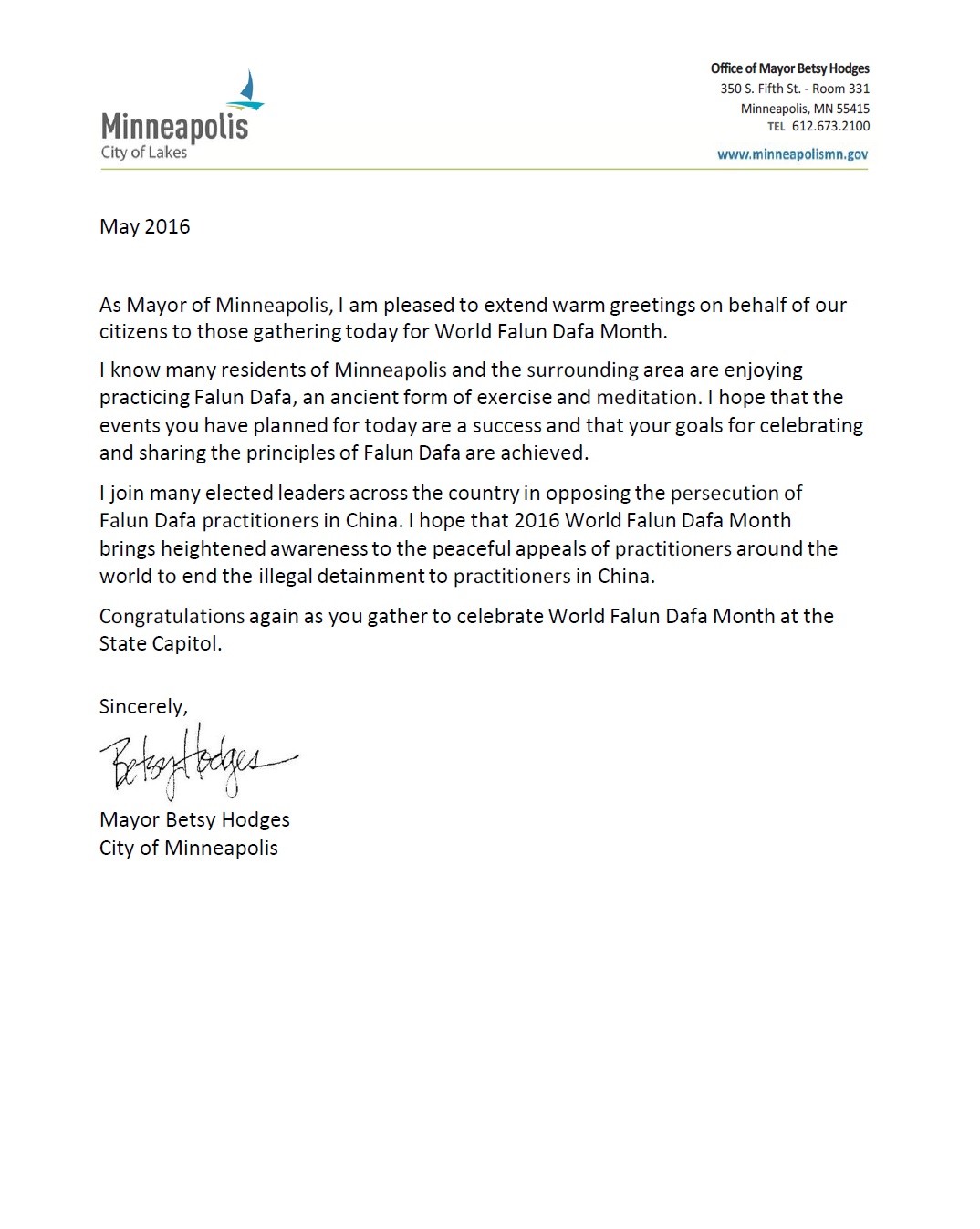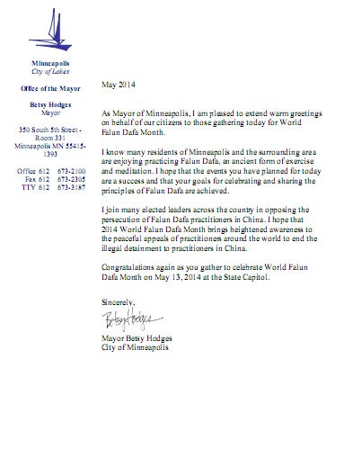 美国明尼阿波利斯市市长祝贺法轮大法月