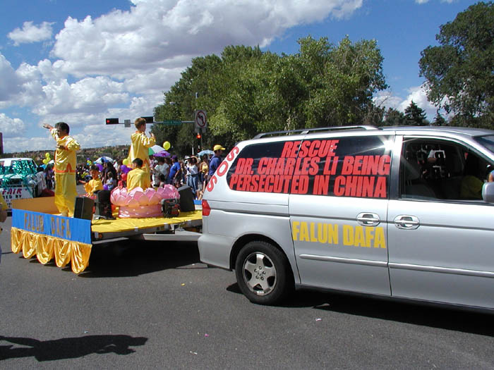 科罗拉多和新墨西哥州学员参加桑特菲花车游行 展现大法的美好