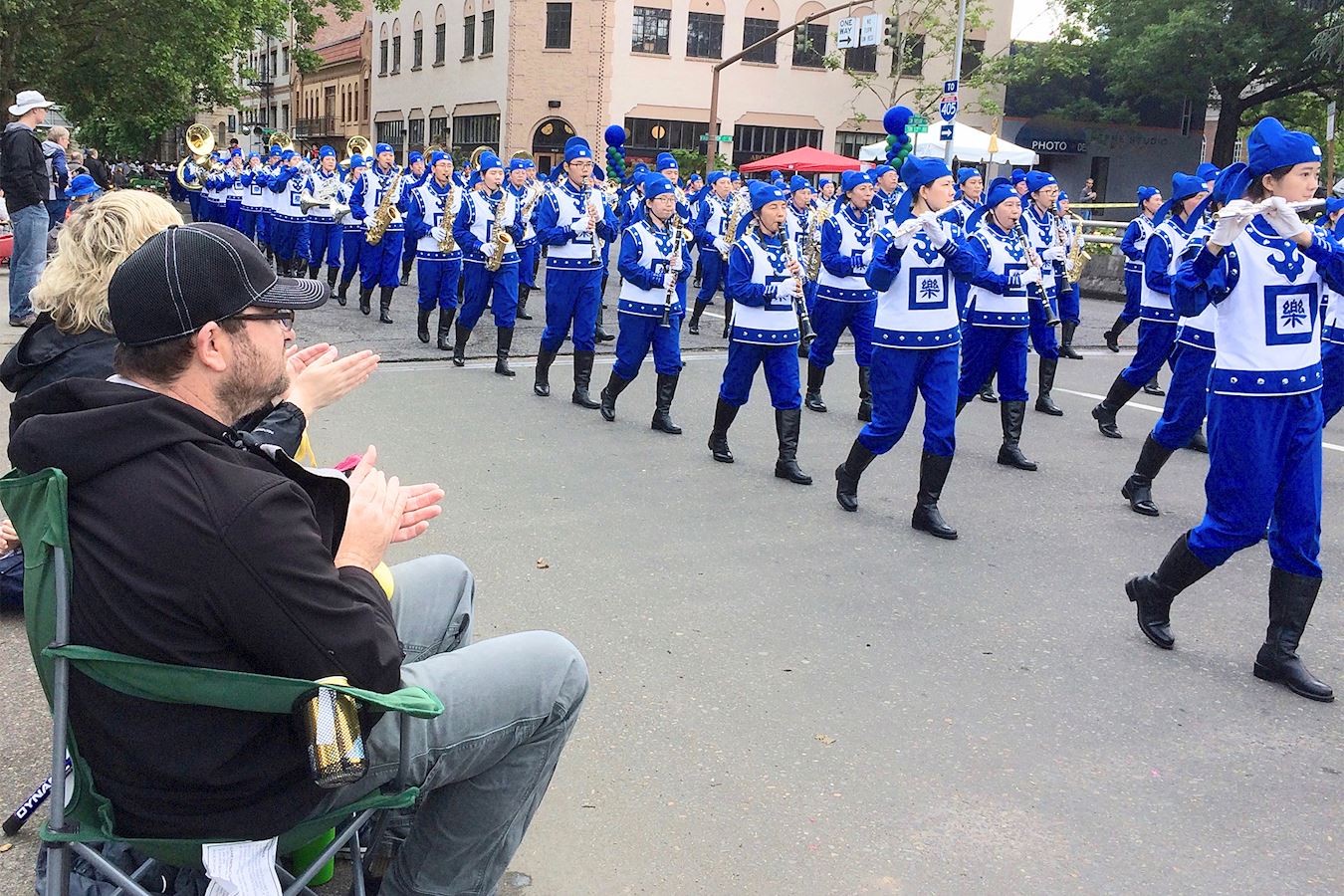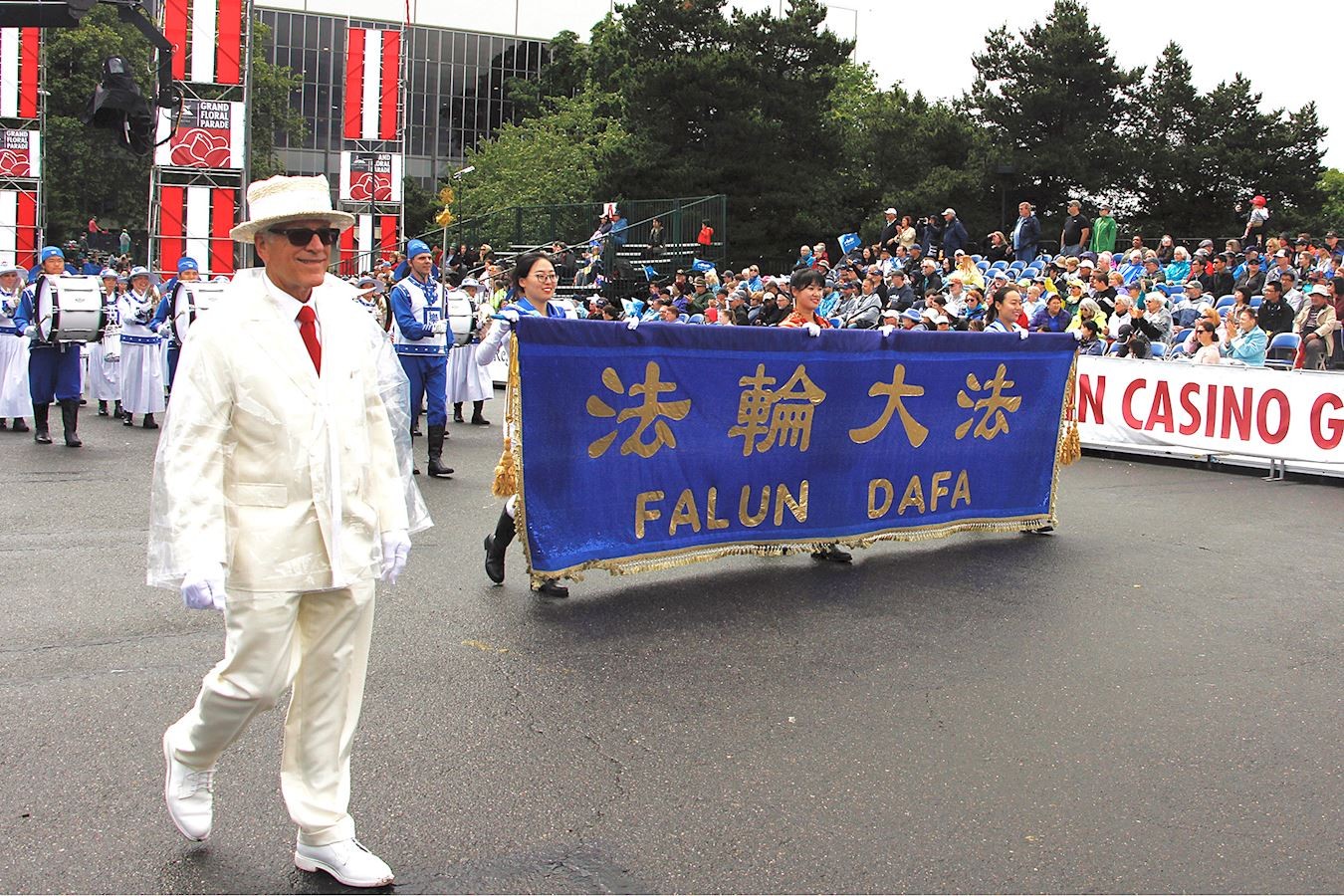 天国乐团受邀参加"玫瑰节大巡游"法轮功团队展风采