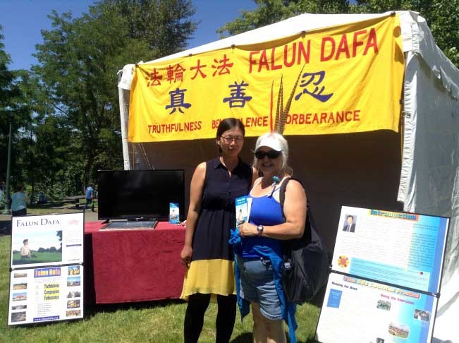 俄勒冈州世界韵律文化节上的法轮功展位