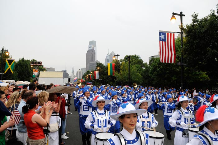 法轮功团体受邀参加费城独立日游行,赢得观众的热烈掌声