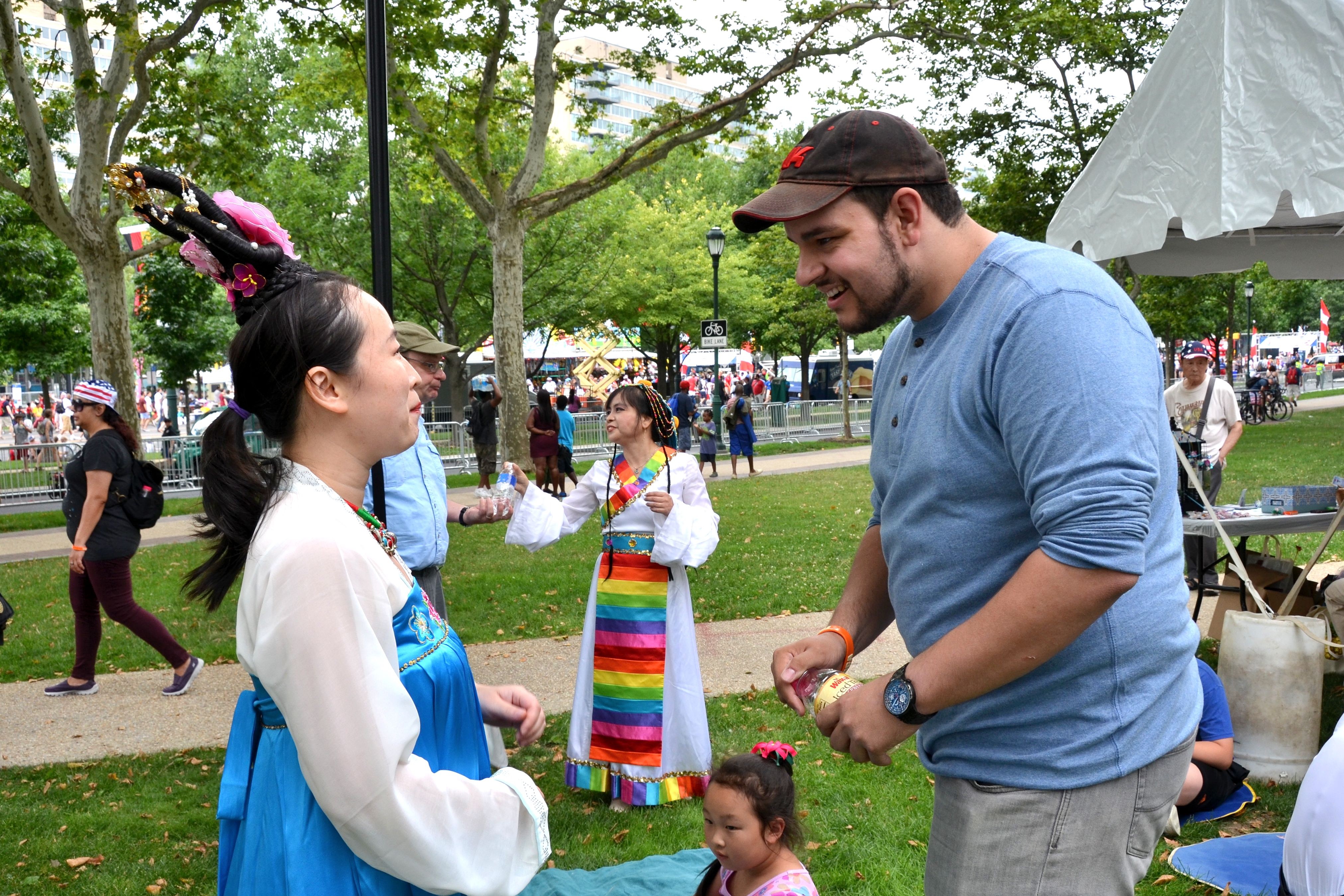 费城法轮功学员应邀参加费城多元文化节,洪法讲真相
