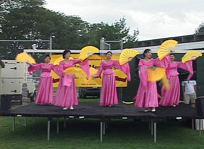 法轮功学员应邀参加费城亚裔文化节,功法演示和明慧学校的舞蹈表演.