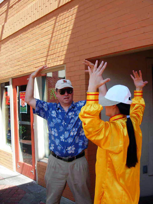 法轮功学员应邀参加南卡州国际太极气功节图为民众现场学习法轮功2007-4-28