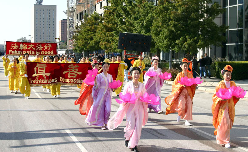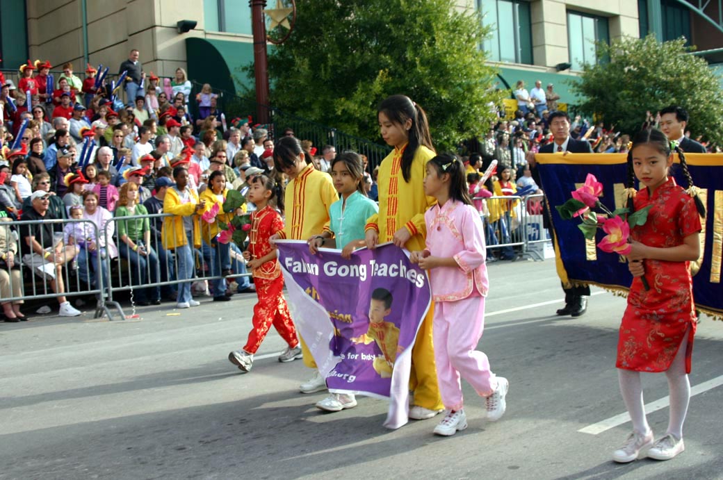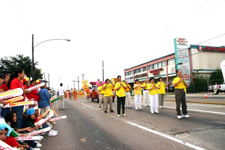 法轮功学员在美国休士顿感恩节大游行上洪法 2005-11-24