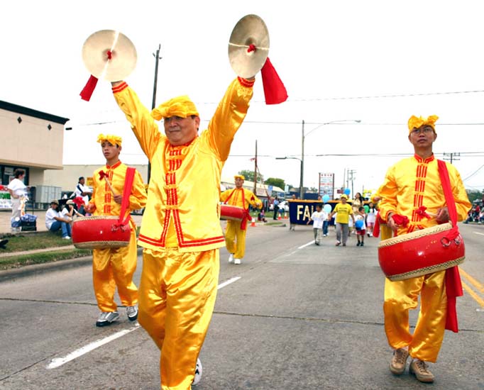 法轮功团体参加休士顿感恩节庆祝活动,演示功法及游行