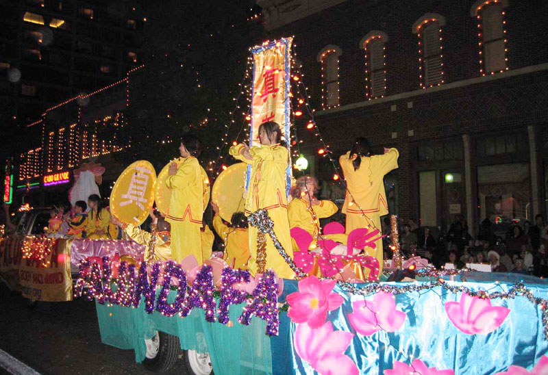 法轮功学员参加德州 Ft. Worth市灯光游行 2005-11-25